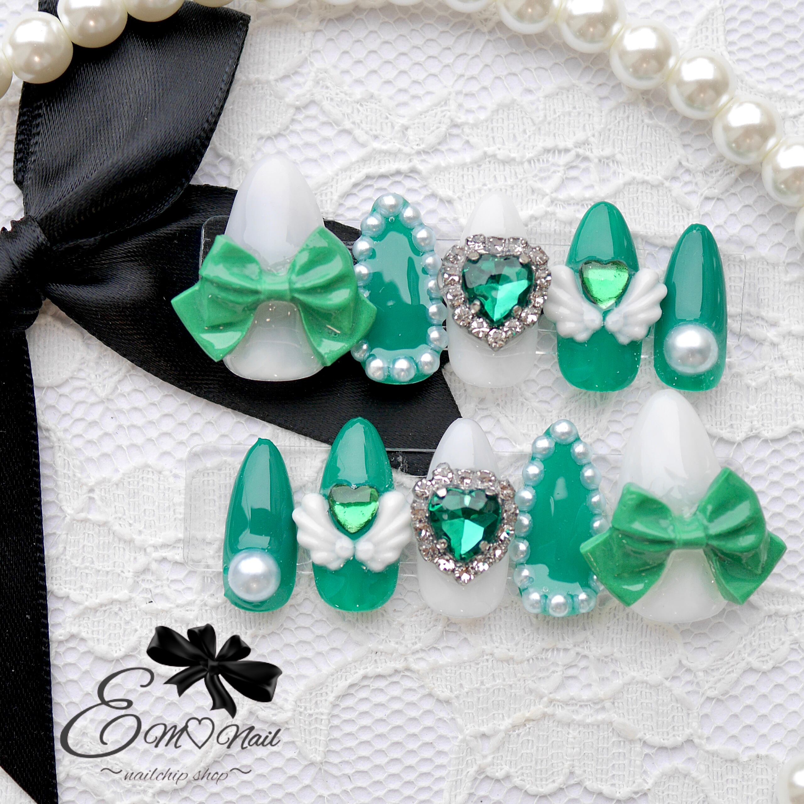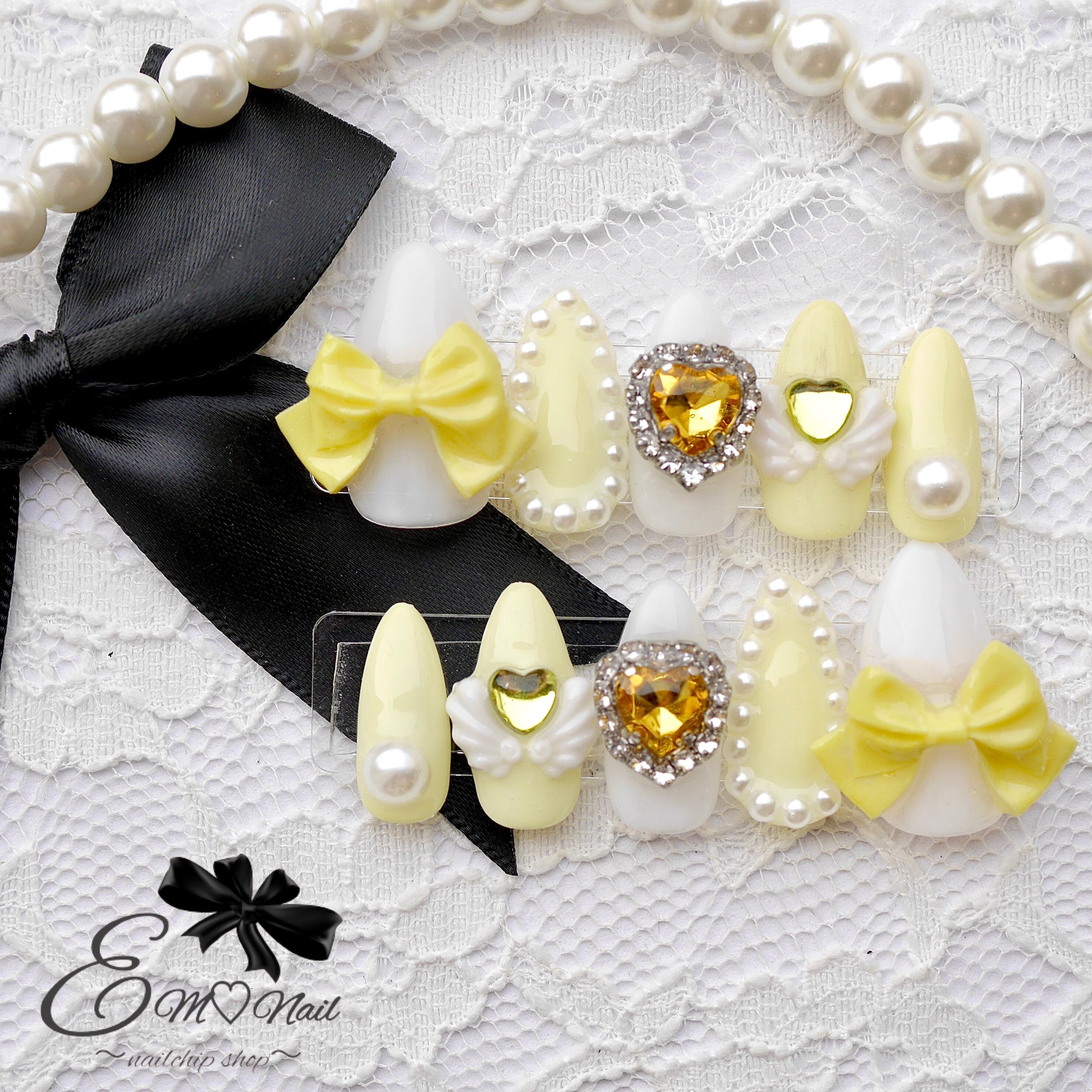 現品* 推し色♡推し活にピッタリ量産型ネイル♡ リボンネイル♡